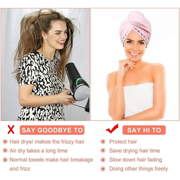 Hair Towel Wrap 3 Pack Hair Drying Towels With Button Ultra Absorbent Microfiber Fast Drying Hair Turbans For Wet Hair Yellow Blue Pink Walmart Ca